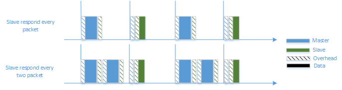 - 準備了足夠的數(shù)據(jù)進行傳輸。 從Connection參數(shù)的說明來看,主設(shè)備和從設(shè)備交替發(fā)送和接收數(shù)據(jù)。 如果沒有更多數(shù)據(jù)要發(fā)送,則連接事件結(jié)束。 數(shù)據(jù)需要一些時間準備, 如果控制器沒有數(shù)據(jù)要依次傳輸,則數(shù)據(jù)只能在下一個連接事件中傳輸。 例如,如果主機發(fā)送一個數(shù)據(jù)包,需要從機響應(yīng),則可以發(fā)送下一個數(shù)據(jù)包,兩個連接事件只能發(fā)送一個數(shù)據(jù)包。 但是如果主機發(fā)送兩個數(shù)據(jù)包,然后需要從機響應(yīng),則兩個連接事件可以發(fā)送兩個數(shù)據(jù)包。